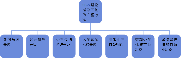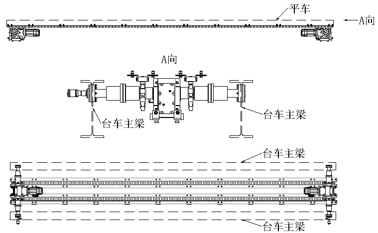 2.導柱在小車起升過程中受到強大的剪切力,往往會造成導柱焊縫撕裂,導柱軸承擠裂; 3.起升動力頭在推進單向液壓缸推進過程中受力不均,左右晃動,造成起升銷插入不順;而且動力頭易進塵,造成雙向差動液壓缸活塞桿受損,出現漏油; 4.小車傳動減速機受力過大,且受力不均,造成減速機移位,存在設備安全隱患; 5.大車鎖緊機構因定位不準,插入不順,造成大車鎖緊機構液壓缸活塞桿變形; 6.整車結構松散,龐大,能耗高。 我們的解決方案: