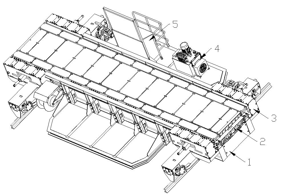 1.臺車2.平車3.起升滑動機構4.液壓站5.操作柜